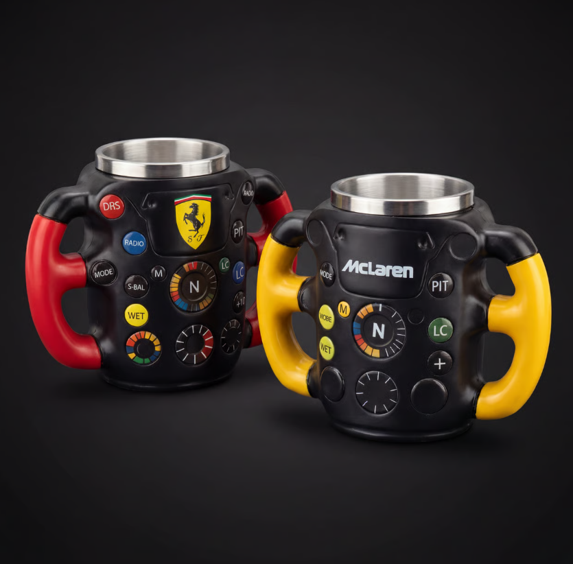 Tazas inspiradas en la F1, hechas a mano y en edición limitada.